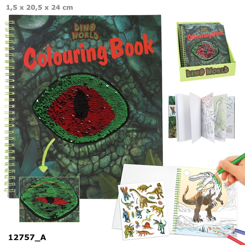 DIno World Målarbok med paljettöga