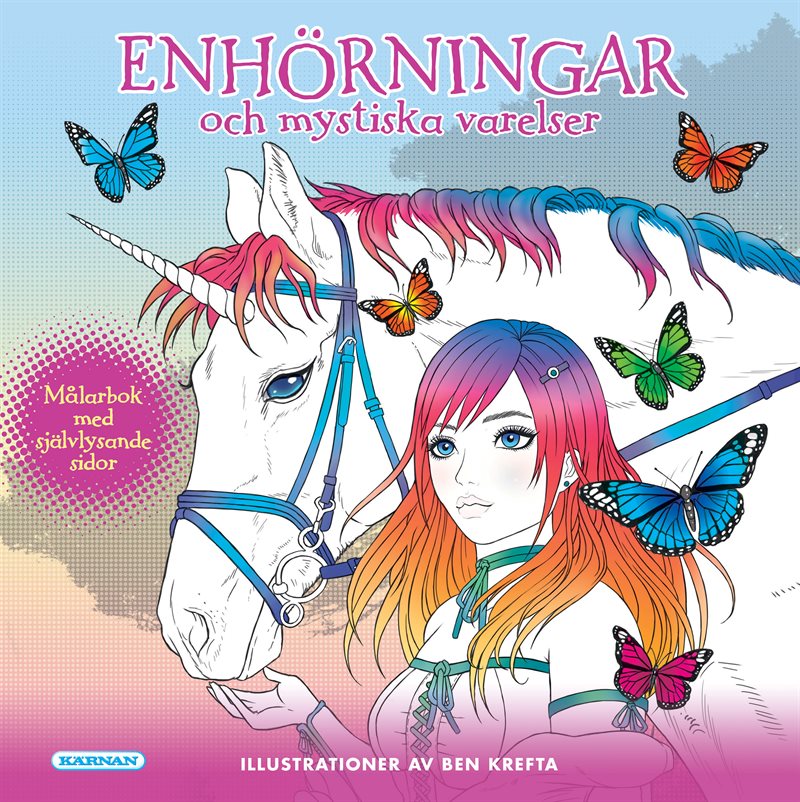 Fans av enhörningar och mystiska varelser kommer att älska den här boken. Det finns allt från fjärilar till magnifika drakar och förstås vackra enhörningar. 24 av sidorna har självlysande element så det är väldigt snyggt att kolla på dem i mörkret.