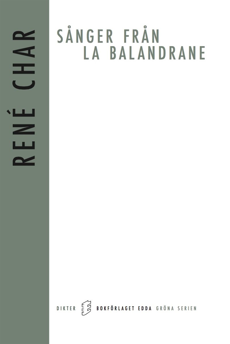 Från René Chars omfattande lyriska författarskap presenteras här för första gången på svenska en hel diktsamling, Sånger från La Balandrane (1977) i tolkning av Maja Thrane och Erik Bergqvist. Det rör sig, som alltid hos Char, om en starkt förtätad poesi; icke klassicistisk, samtidigt tvär och mild, sträng och fri, på en gång poetik och utsaga om människors villkor. Efterord av Madeleine Gustafsson.